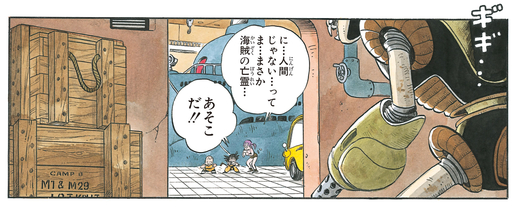 Krillin semble connaître une légende concernant un trésor de pirates caché il y a longtemps dans la zone océanique où aboutissent nos héros. Il semble que ce trésor ait été conservé dans la cachette des pirates dans laquelle ils sont tombés, et que Pirate Robot le gardait depuis l'Antiquité.