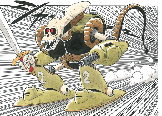 Le robot tire une volée de mitrailleuse avec son bras gauche et essaie de trancher et de couper nos héros en dés, mais ils esquivent et Krillin brise sans crainte l'épée du Robot Pirate avec un coup bien placé.