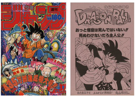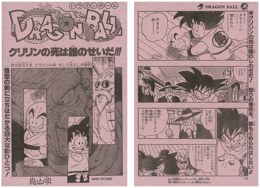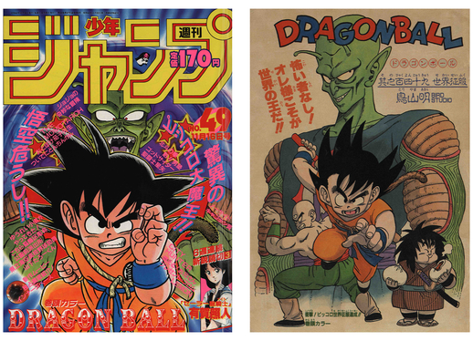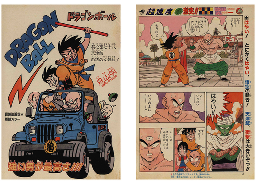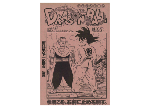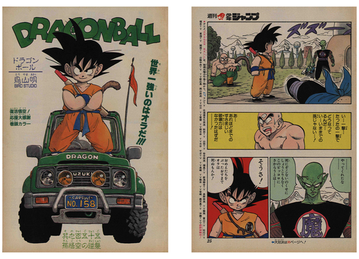 La page de titre de ce manga formait une paire avec la page d'ouverture colorée de Dragon Ball mettant en vedette Goku !
