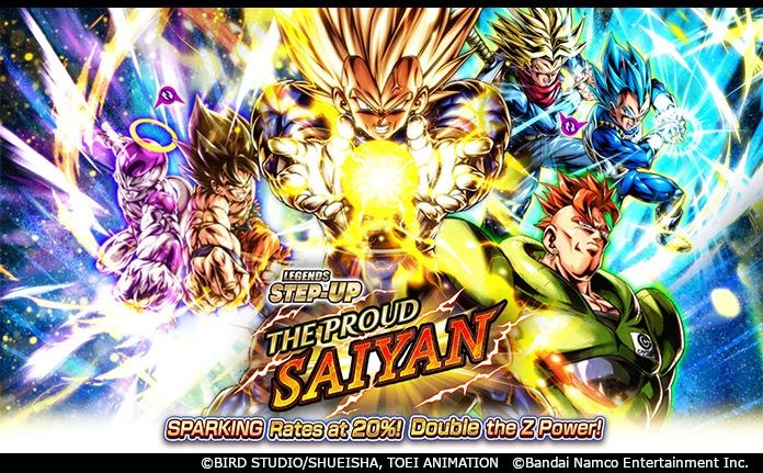 LEGENDS STEP-UP - THE PROUD SAIYAN - se déroule en deux parties, et la première partie propose des bonus super spéciaux où vous obtenez le double de la quantité de puissance Z et le taux d'apparition des personnages SPARKING est augmenté à 20 % ! De plus, des pièces d'invocation [THE PROUD SAIYAN] seront offertes en bonus à chaque invocation dans les deux parties, que vous pourrez apporter au magasin d'échange pour échanger contre de superbes objets comme Z Power contre LEGENDS LIMITED Super Vegeta (DBL68-01S) et des billets d'invocation. !