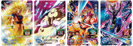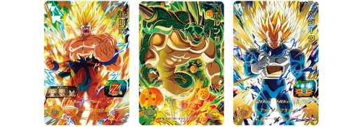 Tout d'abord, 3 cartes représentant des guerriers comme Gogeta du film préféré des fans "Dragon Ball Z: Fusion Reborn ". De plus, Porunga fait ici ses débuts en Battle Card en tant que carte super spéciale avec la capacité d'exaucer 3 vœux !