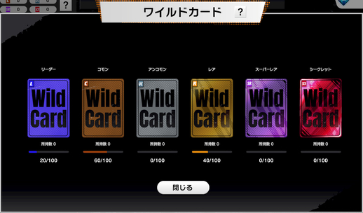Une fois que vous possédez 4 copies d'une carte, vous recevrez automatiquement des points "Wild Card" à chaque fois que vous en tirerez une copie supplémentaire. Et lorsque la jauge d'une rareté particulière est pleine, vous pouvez échanger ces points contre une carte de même rareté de votre choix !
