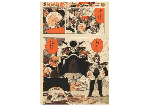 De retour dans l'histoire, Frieza et ses acolytes ont fait leurs débuts en recherchant les Dragon Balls. Frieza dégageait une aura terrifiante alors qu'il accomplissait des actes terribles depuis sa mystérieuse chaise spatiale.