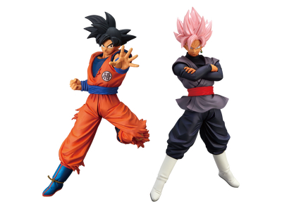 Ces deux personnages présentent des détails faciaux incroyables et des poses dynamiques - Goku Black exprime son ambition de détruire toute vie mortelle et de devenir le dieu absolu de sa nouvelle utopie, tandis que Goku se manifeste de sa détermination !