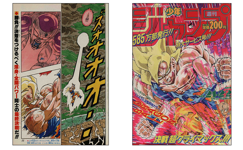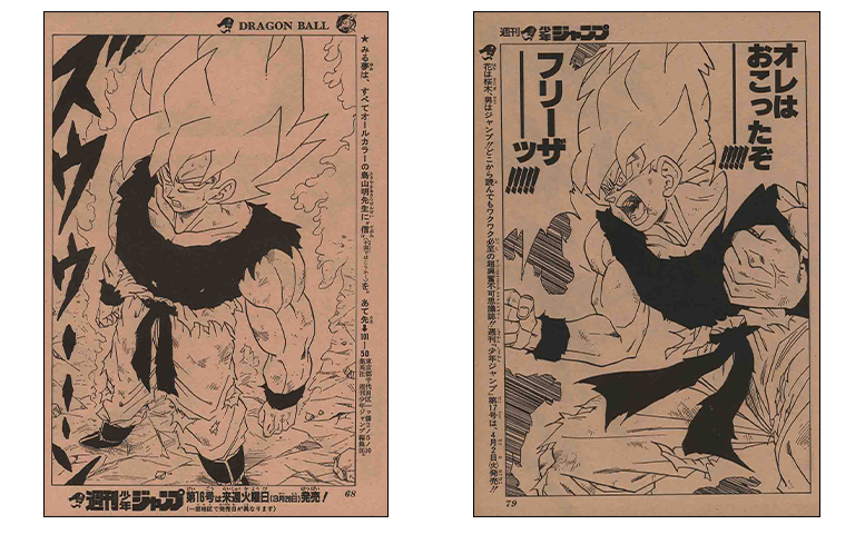 Super Saiyan Goku a ensuite explosé en couverture de ce numéro du Weekly Shonen Jump! Ici, la bataille finale contre le Super Saiyan et l'empereur maléfique s'est déroulée, en commençant par de superbes pages couleur !