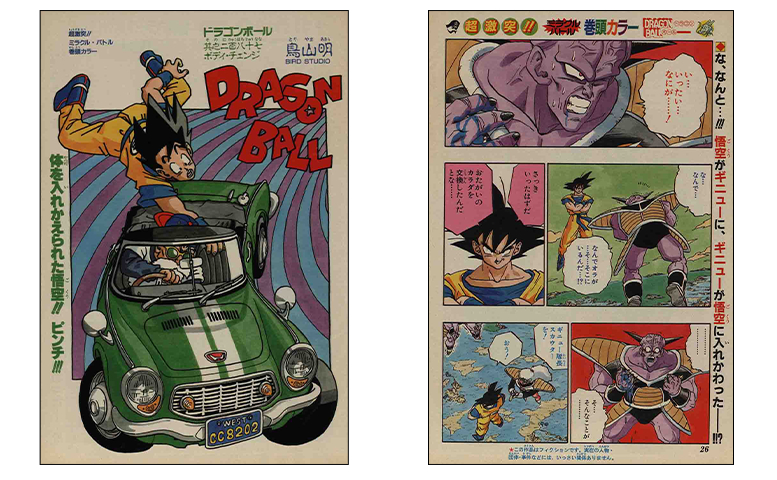 De retour dans le manga, la bataille de Goku avec Ginyu a pris une tournure choquante lorsque le chef violet de la Force Ginyu a échangé ses corps avec notre protagoniste ! Les résultats de l'incroyable technique de Body Change de Ginyu ont même été présentés dans des couleurs vives.