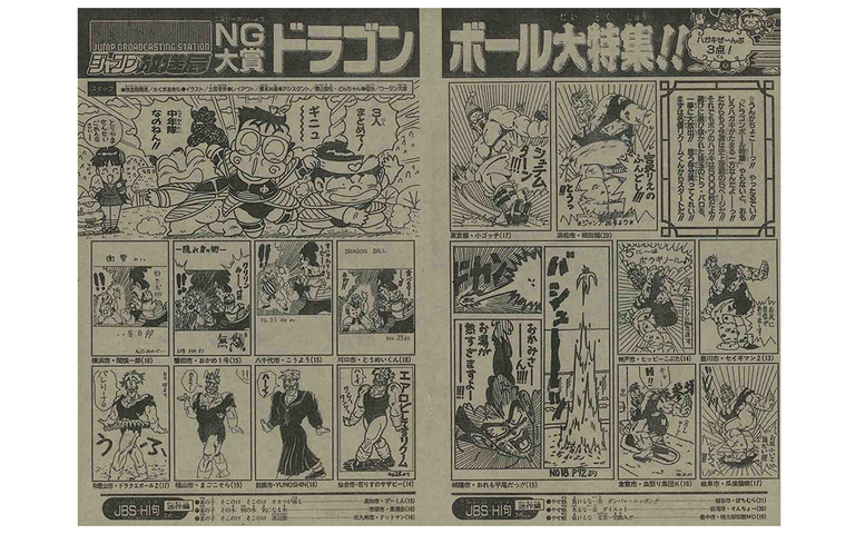 À cette époque, la folie Dragon Ball s'est également répandue dans le coin des lecteurs "Jump Broadcasting Station" du magazine ! Les lecteurs ont partagé ici leurs gags originaux de Dragon Ball dans une fonctionnalité de luxe.
