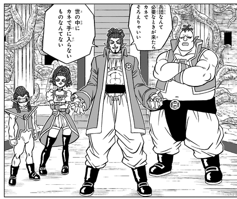 Lorsque Gas a des difficultés contre cette puissante triple équipe, Oil et Macki tentent de se lancer dans la mêlée, mais ils sont arrêtés net par une hypnose opportune de Monaito, le vieux compagnon Namekian de Granolah.