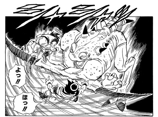 Yakon affronte Goku sur l'étape 2 du vaisseau spatial de Babidi, et la bête ne perd pas de temps pour combattre le Saiyan avec les redoutables griffes sur ses bras et ses jambes ! Goku esquive à temps, mais sa pauvre chemise n'a pas autant de chance...