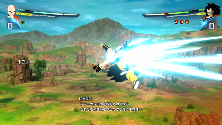 En jouant à l'histoire de "Goku", j'ai senti que Raditz était super puissant pour un ennemi qui apparaît si tôt. Vous devez vaincre Raditz pour accéder au scénario alternatif, mais comme ses mouvements sont si précis et qu'il a tellement de santé et de puissance d'attaque, ce sera difficile à faire lors de votre première partie. En jouant à cette démo en tant que Goku, je n'ai pas pu m'empêcher de sympathiser avec Goku et de me dire : « Bon sang, ce combat contre Raditz était vraiment difficile !