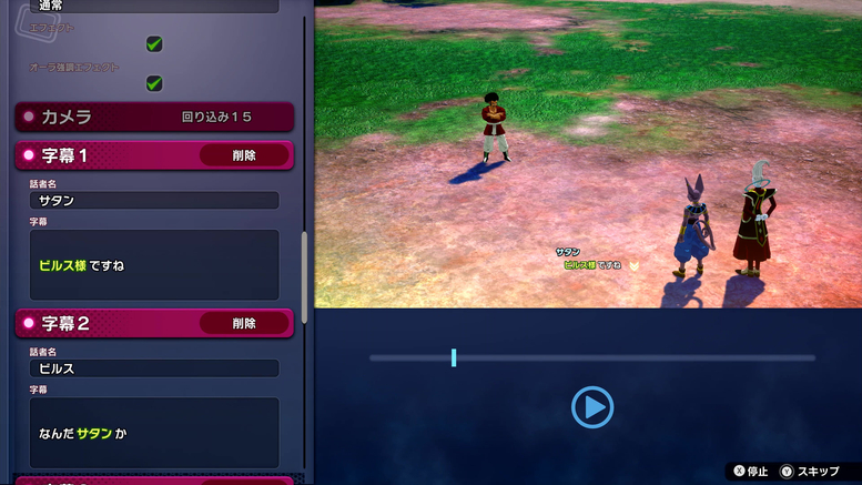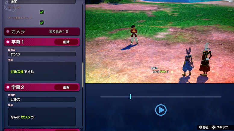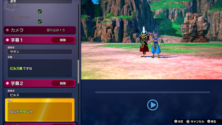 J'ai été étonné par le grand nombre d'options proposées dans le "Mode Édition". Des personnages et des scènes aux dialogues d'avant-combat et aux effets de combat, vous pouvez changer presque tout ce à quoi vous pouvez penser ! De plus, puisque vous pouvez même ajuster les images des effets de ralenti et les paramètres de la caméra, vous pouvez vraiment créer votre propre bataille originale, comme si vous montiez une vidéo ! Vous pouvez même copier les paramètres de « Extra Battle » et modifier uniquement les parties que vous souhaitez, permettant ainsi à chacun de créer facilement ses propres batailles !