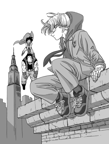 En plus de cela, la page de titre présente une illustration de Trunks et Goten directement de Toyotarou lui-même. Les stars de notre histoire n’ont jamais été aussi belles !