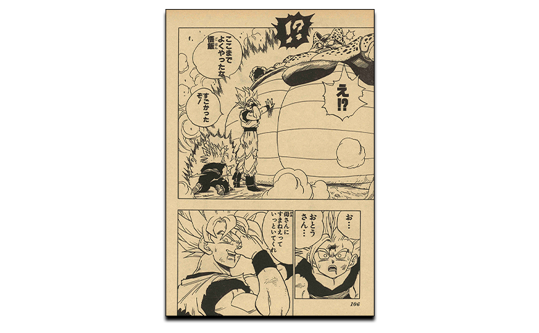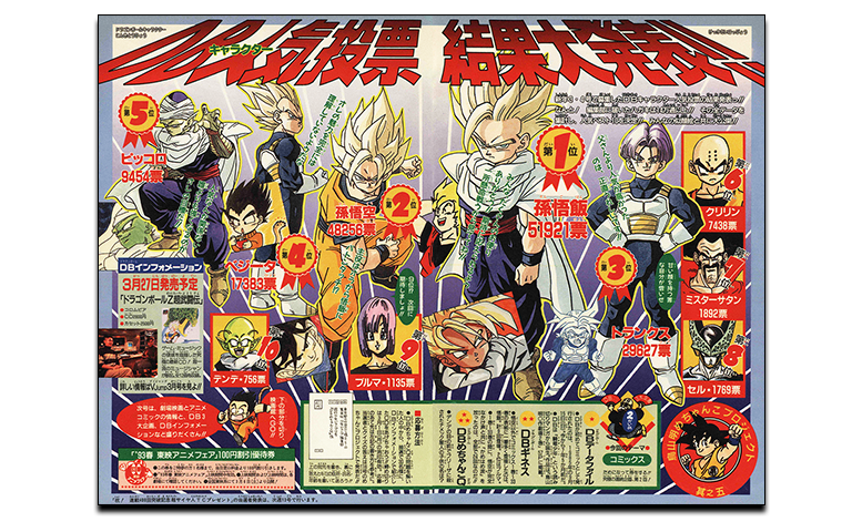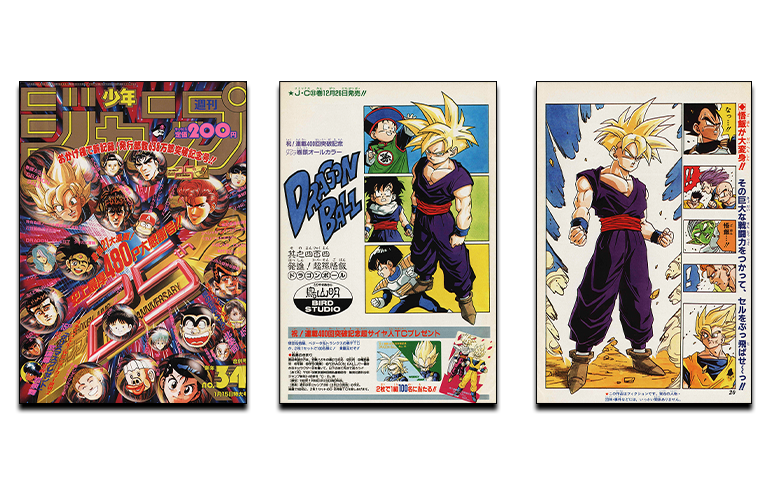 Le numéro du Weekly Shonen Jump célébrant plus de 6,38 millions d'exemplaires vendus mettait en vedette Super Saiyan Goku en couverture ! Quant au manga, dans ce numéro nous arrivons enfin à la confrontation entre Gohan et Cell, le début de leur confrontation étant montré en couleur sur les premières pages !