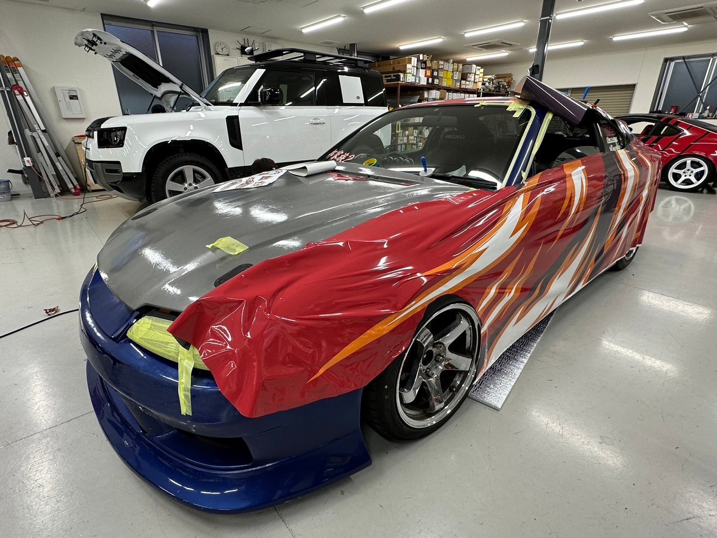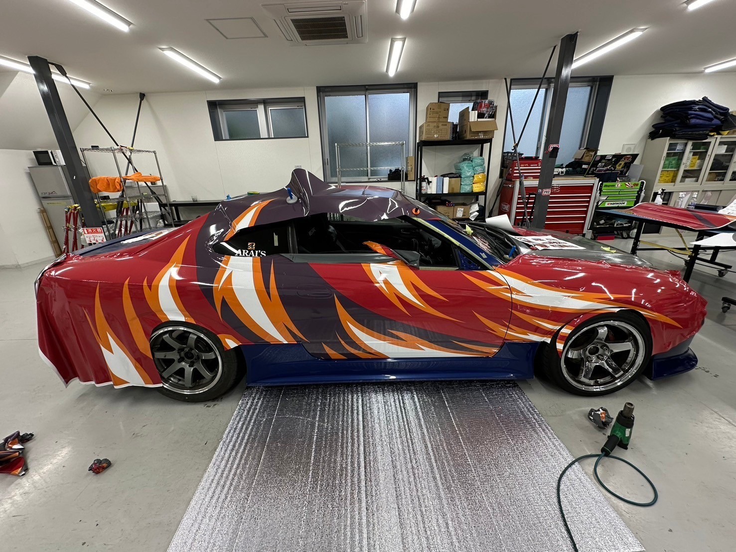 Ensuite, un film vinyle a été soigneusement appliqué autour de toute la voiture...