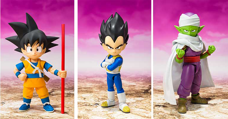 Goku (Mini) -DAIMA-, Vegeta (Mini) -DAIMA- et Piccolo (Mini) -DAIMA- rejoignent tous la série SHFiguarts ! Grâce au haut niveau d'articulation et aux pièces échangeables incluses avec ces figurines, vous pouvez recréer toutes sortes de scènes de combat de la série !
