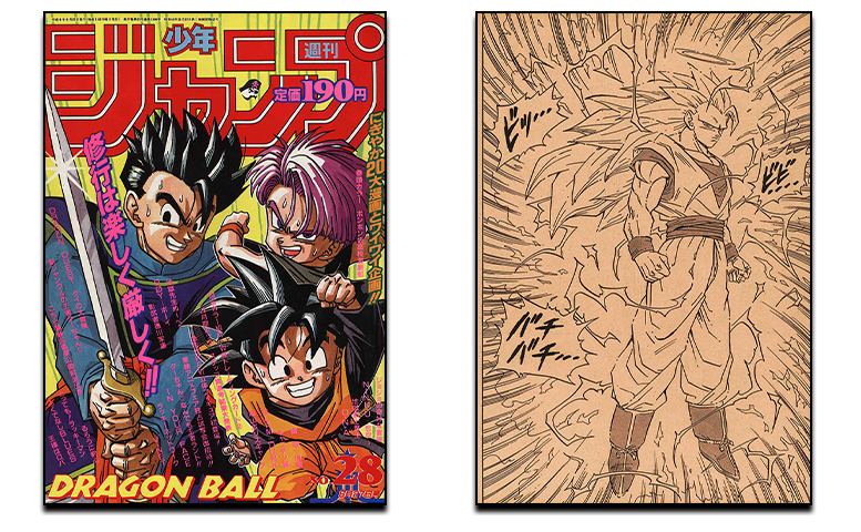 La couverture de ce numéro mettait en scène Goku et ses deux fils transformés en Super Saiyans, préfigurant un combat comme on n'en avait jamais vu auparavant !