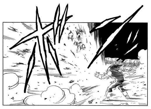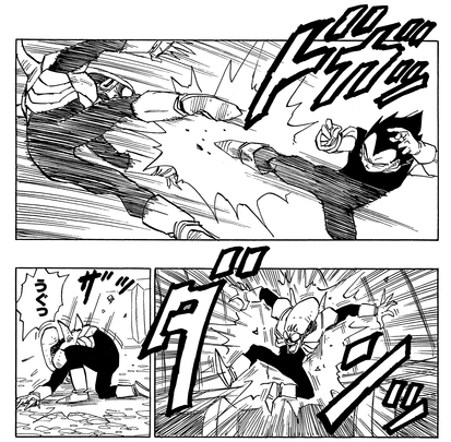 Vegeta est le premier à entrer dans la mêlée et commence immédiatement à submerger Puipui!