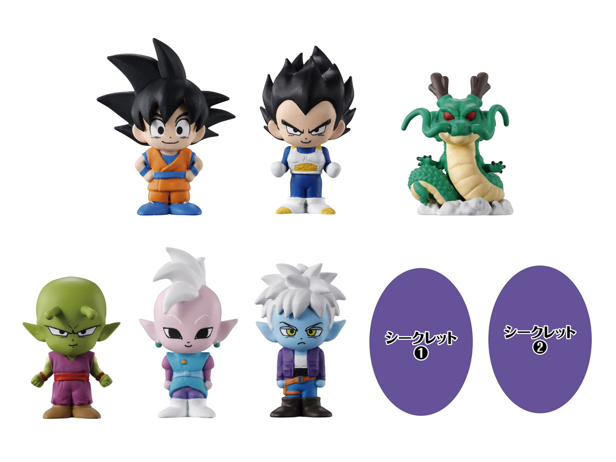 La gamme à huit chiffres comprend : Goku (Mini), Vegeta (Mini), Shenron, Piccolo (Mini), Supreme Kai (Mini), Glorio, Secret #1 et Secret #2 !
