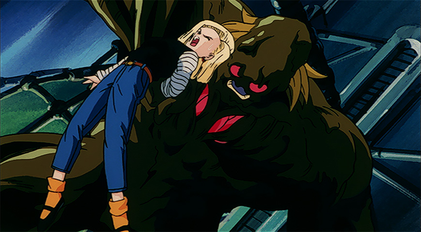 Android 18 lance attaque après attaque contre la monstruosité suintante, mais elle n'est pas de taille face à lui et est finalement vaincue !
