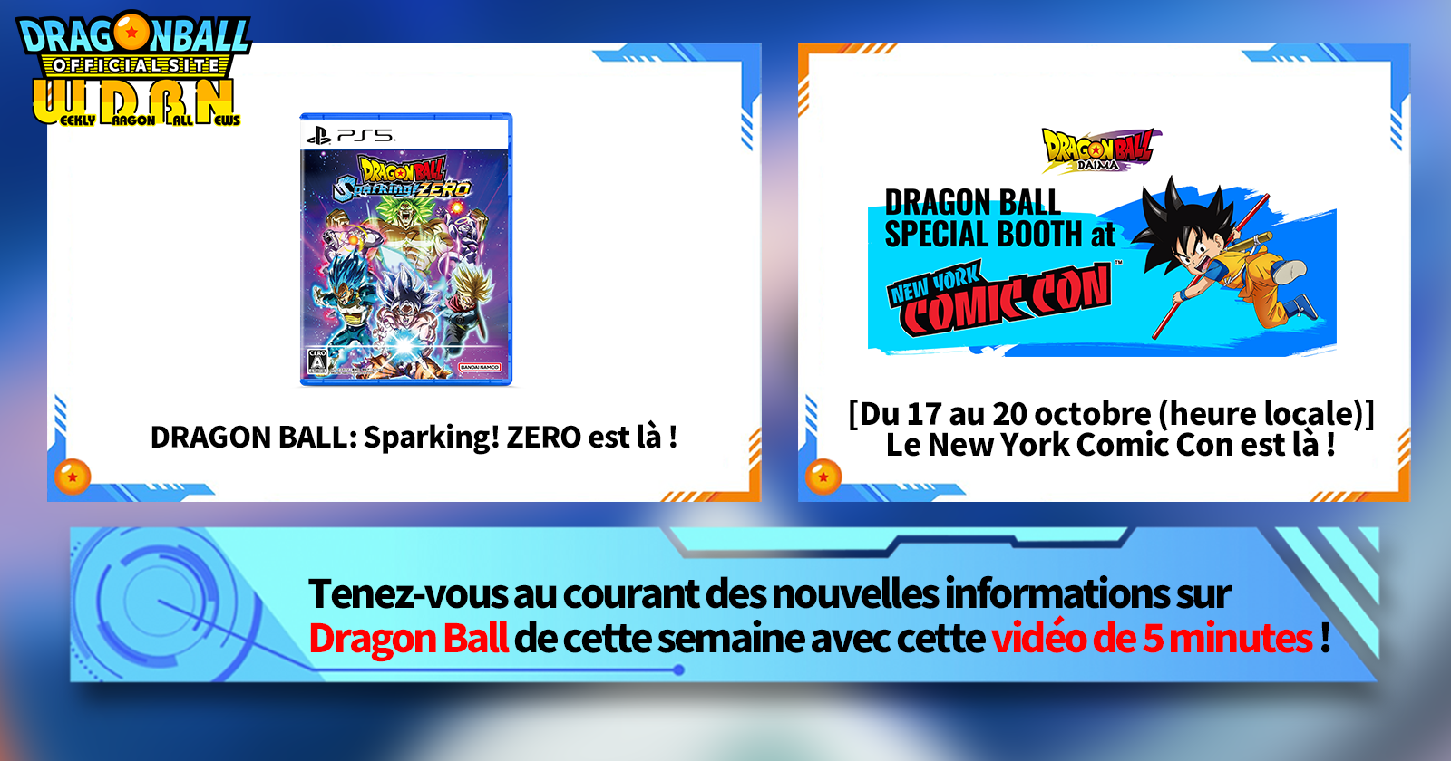 "Nouvelles hebdomadaires Dragon Ball" est une série vidéo mise à jour tous les lundis (JST) pour vous apporter les dernières nouvelles du monde de Dragon Ball! Rejoignez le rédacteur en chef de V Jump, Victory Uchida, alors qu'il couvre toutes les informations les plus importantes publiées la semaine précédente ainsi que de nouvelles mises à jour comme les informations sur les nouveaux produits et les actualités du site pour la semaine à venir !
