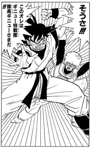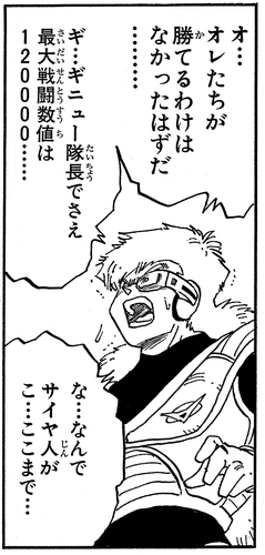 Goku utilise alors Kaio-Ken et son Power Level monte en flèche à plus de 180 000, ce qui amène Ginyu à se demander si Goku pourrait être le légendaire Super Saiyan. En entendant cela, Jiece , choqué, s'exclame : "La seule chose... que Maître Frieza lui-même ait jamais craint ?!"