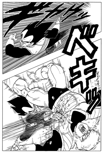 Alors que Ginyu a du mal à utiliser la forme de Goku, Vegeta prend le dessus sur Jiece avec une frappe puissante qui l'envoie voler !