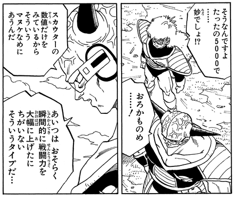 Jiece ne sait pas que Goku et les autres peuvent contrôler leurs propres niveaux de puissance, et faire confiance au Power Level affiché par son Scouter le met dans une situation délicate. Même si Ginyu l'a prévenu à ce sujet, il retombe dans le même piège et sa concentration sur son Scouter permet à Vegeta de le prendre par surprise !