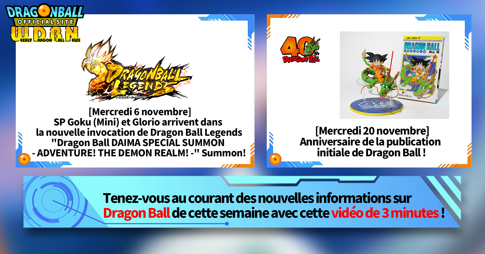 "Nouvelles hebdomadaires Dragon Ball" est une série vidéo mise à jour tous les lundis (JST) pour vous apporter les dernières nouvelles du monde de Dragon Ball! Rejoignez le rédacteur en chef de V Jump, Victory Uchida, alors qu'il couvre toutes les informations les plus importantes publiées la semaine précédente ainsi que de nouvelles mises à jour comme les informations sur les nouveaux produits et les actualités du site pour la semaine à venir !