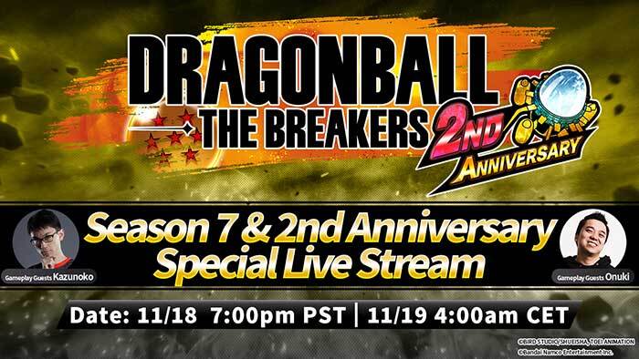 Le jeu d'action en ligne à succès DRAGON BALL: THE BREAKERS sort bientôt sa saison 7 très attendue ! Pour célébrer la nouvelle saison à venir et le deuxième anniversaire, un stream spécial en direct sera diffusé sur la chaîne YouTube officielle de Bandai Namco Entertainment !