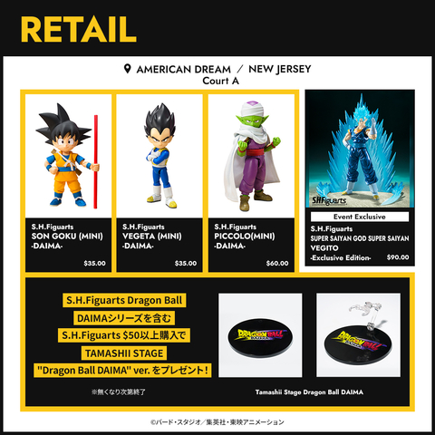 Des figurines et des cartes seront disponibles à l'achat, y compris les figurines Dragon Ball DAIMA de SHFiguarts !
