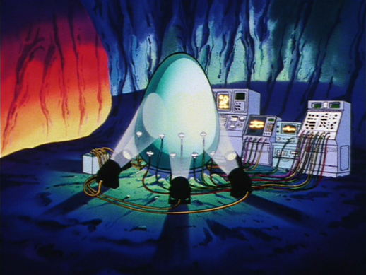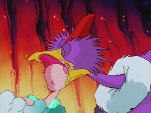 Mais le Fire-Eater n'est pas éteint ! Et un de ces insectes apparaît devant eux ! Il aide le poussin à éclore en picorant l'œuf, puis s'envole loin du cratère.