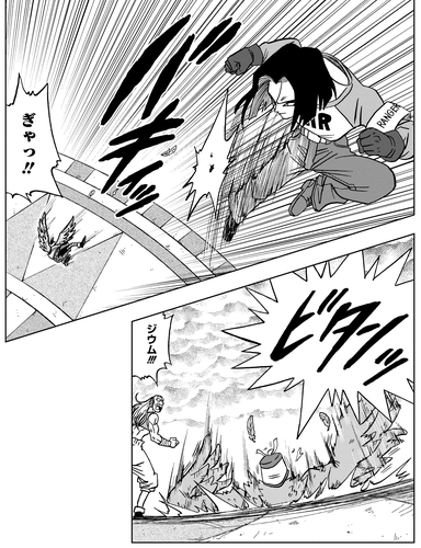Lorsque Zium a été pris pour cible par Android 17, il a pris de la distance en s'envolant. Cependant, Android 17 a utilisé son incroyable puissance de saut pour attraper Zium, en disant : « Pas besoin de voler pour atteindre cette hauteur », et l'a fait tomber au sol avec un coup de pied puissant.