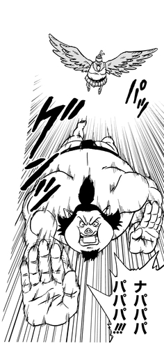 Au milieu d'une bataille chaotique, Zium a fait tomber Napapa du ciel, essayant de prendre Piccolo par surprise.