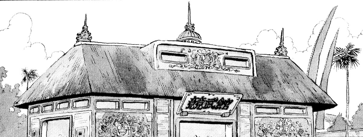 La salle de tournoi où se sont déroulés les préliminaires du Tenkaichi Budokai présente un extérieur distinctif, rappelant les temples asiatiques