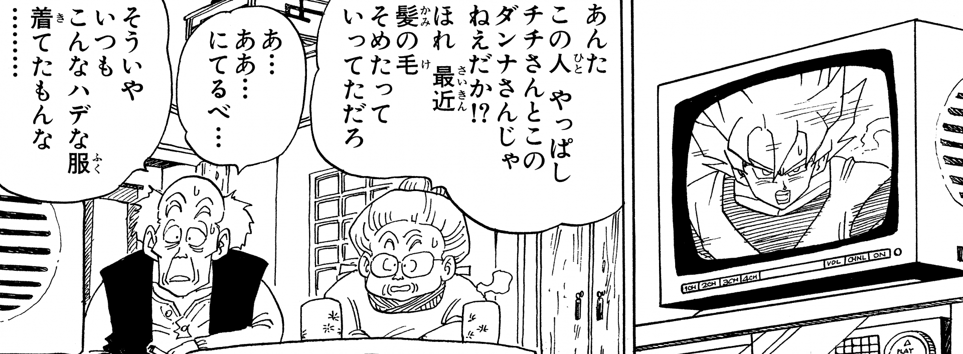 En passant, le couple de personnes âgées qui vit près de Goku a déclaré qu'il portait toujours sa tenue orange lorsqu'ils l'ont vu à la télévision pendant les Cell Games. Il est certainement assez facile à repérer avec sa couleur vive !