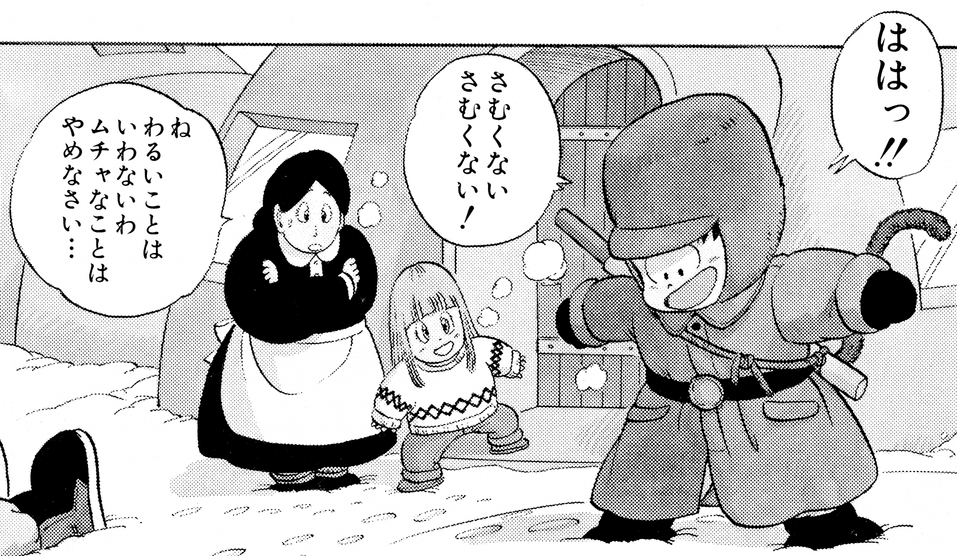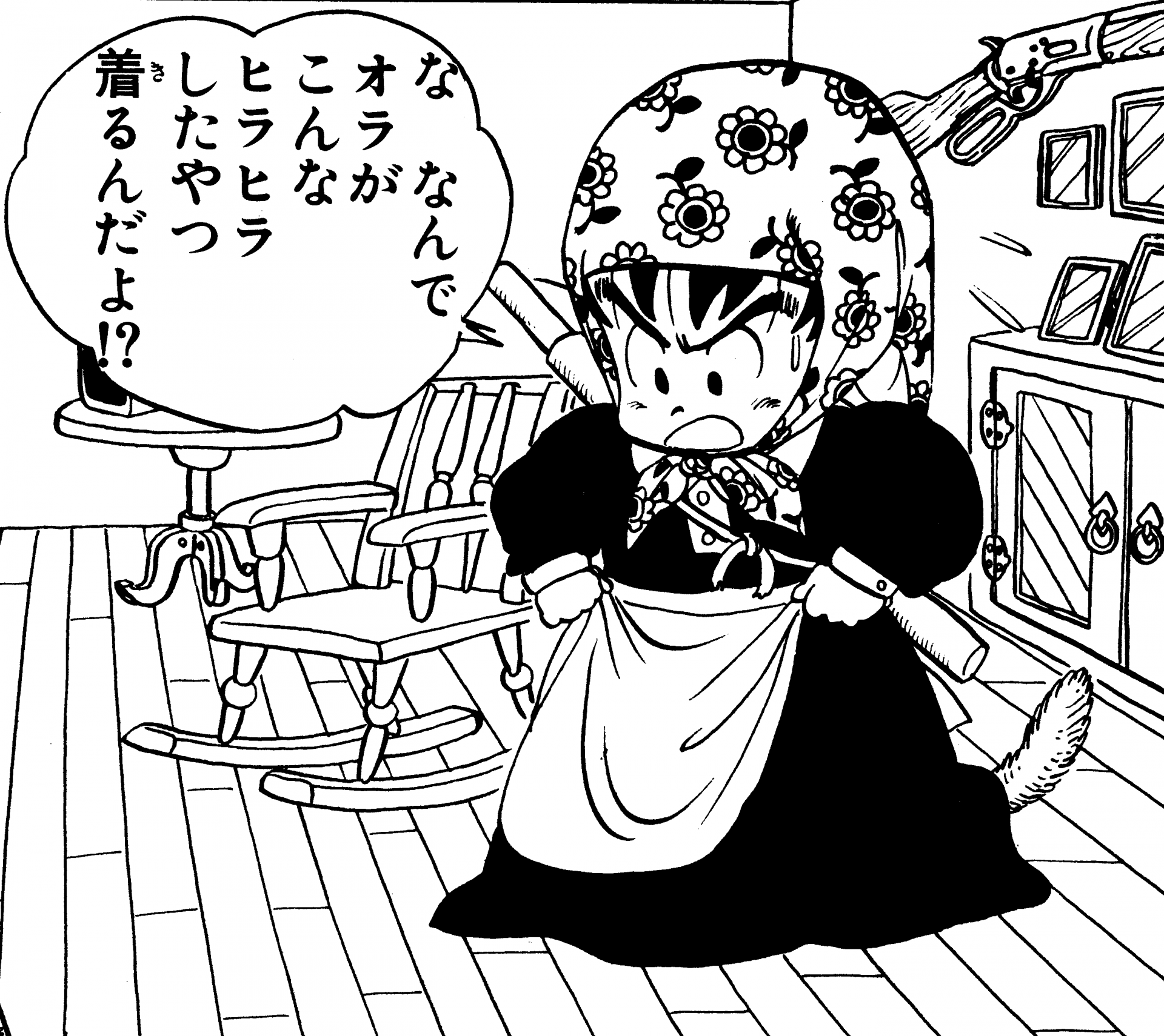 Goku s'est même déguisé en fille une fois dans sa jeunesse ! Il portait cette tenue pour protéger certains villageois d' Oolong (bien qu'il se soit plaint tout le temps). Même Oolong a été dupe de l'apparence adorable de Goku dans cette tenue avec son bandana à fleurs ! Plus tard, Goku a porté cette tenue d'hiver chaude qu'il a empruntée à Suno dans le Jingle Village pour se protéger du froid glacial. Nous ne savons pas exactement de quoi il était fait, mais il a dû être assez facile de s'y déplacer avec toute l'action à laquelle il a été confronté lors de son ascension à travers Muscle Tower!