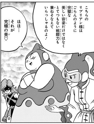 Ribrianne tente d'utiliser son attaque ultime pour achever Android 18 tandis que Kakunsa et Rozie la retiennent. Cependant, elle est instantanément captivée après avoir repéré Krillin dans les gradins.
