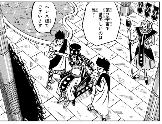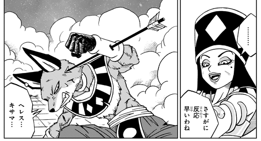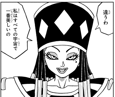 En remarquant l'étrange sens de l'esthétique de l'Univers 2, Beerus la taquine en disant : « Peut-être que tu n'es pas si bien que ça dans ton univers. »