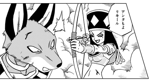 Lors du Zen Exhibition Match entre les God of Destruction de chaque univers au Tournament of Power, elle perce le bras du God of Destruction de l'Univers 8, Liquiir, avec un tir de son arc signature.
