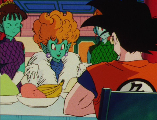 Elle ordonne à ses servantes de garder Goku auprès d'elles, en disant : « C'est tellement électrisant d'avoir un homme près d'elles… Notre invité ne partira pas ! Vous y veillerez, n'est-ce pas ? » Ensemble, elles tentent toutes sortes de tours sur Goku pour le faire rester, comme par exemple lui arroser la nourriture d'herbes pour l'endormir et lui offrir un bon bain chaud.