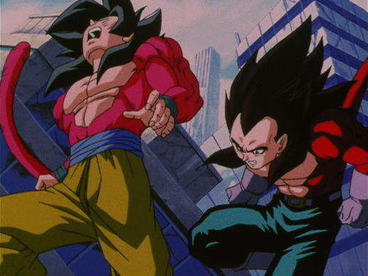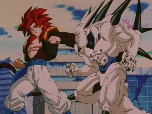 Résultat de la Fusion entre Super Saiyan 4 Goku et Vegeta réalisée pour vaincre Yi-Shinron, Gogeta est le guerrier Fusion ultime avec une puissance surpassant de loin les deux individuellement.