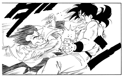 Shen a libéré une onde de choc avec le mouvement de ses doigts qui a envoyé Piccolo voler.