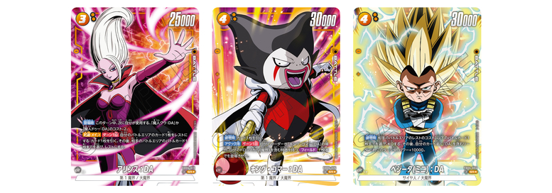 Les cartes SR Alt-Art « Jaunes » de cet ensemble présentent « Dr. Arinsu : DA », « King Gomah : DA » et «Vegeta (Mini) : DA » de Dragon Ball DAIMA!