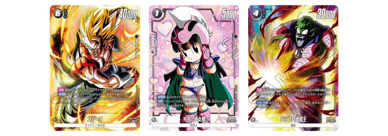 Les cartes SR Alt-Art « Noires » de cette extension sont « Gogeta», « Chi-Chi : Enfance » et « Roi Piccolo» ! Cette gamme comprend non seulement des cartes représentant des guerriers aux effets explosifs, mais aussi la très mignonne « Chi-Chi : Enfance » !