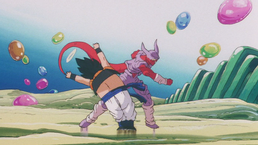 Soudain, pris de nausées, Veku riposte en pétant sur le démon ! Il se moque alors de Janemba en adoptant un style de combat plutôt chaotique. Malgré son talent pour décrypter ses adversaires, Janemba ne comprenait rien à de telles absurdités !