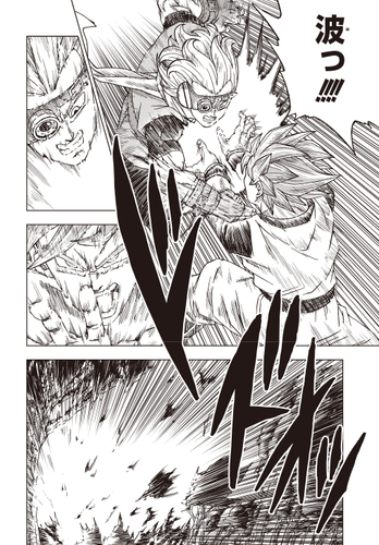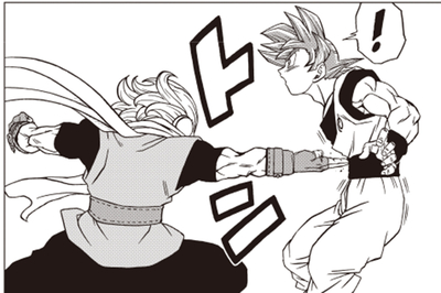 Goku fait face au mortel Granolah sous sa forme de Super Saiyan God , mais est pris au dépourvu et abattu lorsque Granolah est capable d'identifier le point faible de Goku en utilisant son œil droit infaillible !