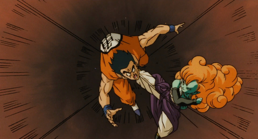 Sentant que quelque chose ne va pas, Yamcha saute dans la mêlée, mais Zangya le frappe à terre, continuant l'assaut même après que le guerrier se soit effondré au sol.