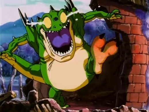 Goku et Pan le rencontrent par hasard après qu'il ait attaqué un village près d'un lac. Liang-Shinron est projeté en l'air par un coup de pied de Pan. Le dragon maléfique fond alors en larmes lorsqu'une grosse pierre lui tombe sur le pied. Voyant cela, Goku remarque : « Euh, Monsieur… avec tout le respect que je vous dois, vous ne me semblez pas si fort. »