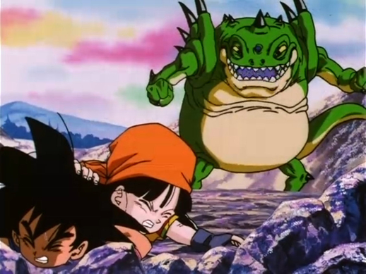 Cependant, Gill trouve de l'eau de source fraîche et restaure leur pouvoir juste à temps ! Maintenant qu'ils ont retrouvé leurs forces, Goku et Pan lancent un Kamehameha sur le dragon, le détruisant !
