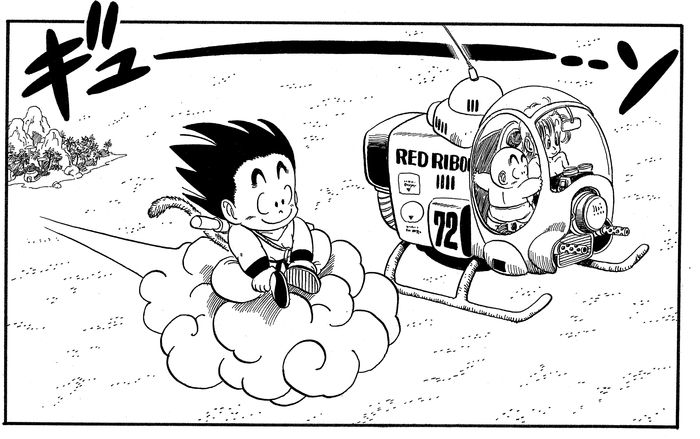 Les avions présentés dans l'histoire ont tous des numéros différents, mais ce produit génial est le n° 72, qui est celui que Bulma emprunte à l' Red Ribbon Army et qui est plus tard volé par Lunch!